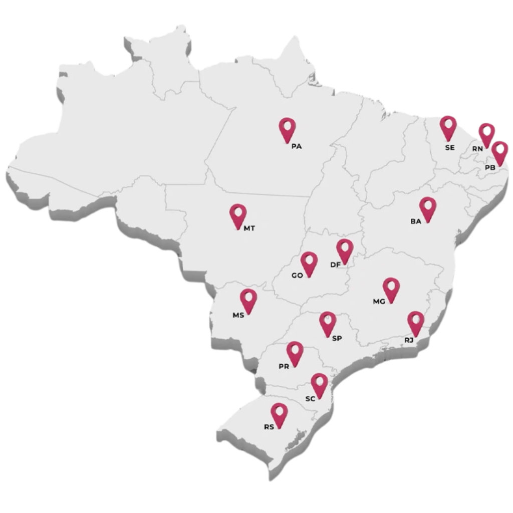 Atualmente temos clientes em mais de 15 estados do Brasil, incluindo São Paulo, Minas Gerais, Rio de Janeiro, Rio Grande do Sul, Mato Grosso do Sul, Paraná, Ceará, Distrito Federal, Goiás, Bahia, entre outros.